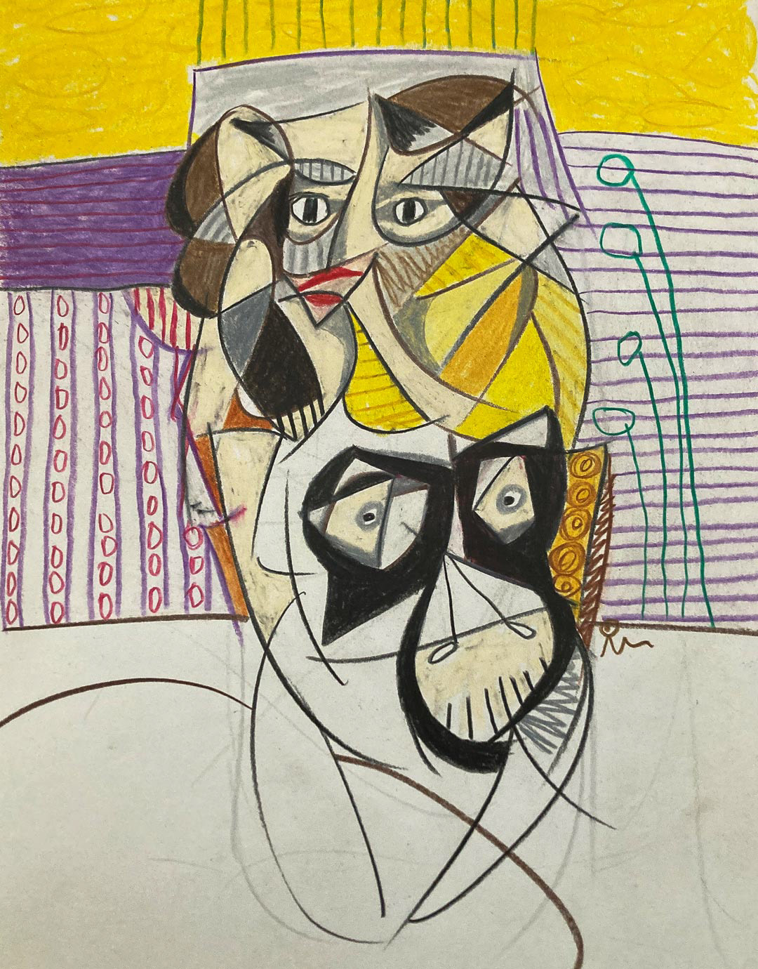 DORA VISIT PABLO I charcoal, ink pen on paper