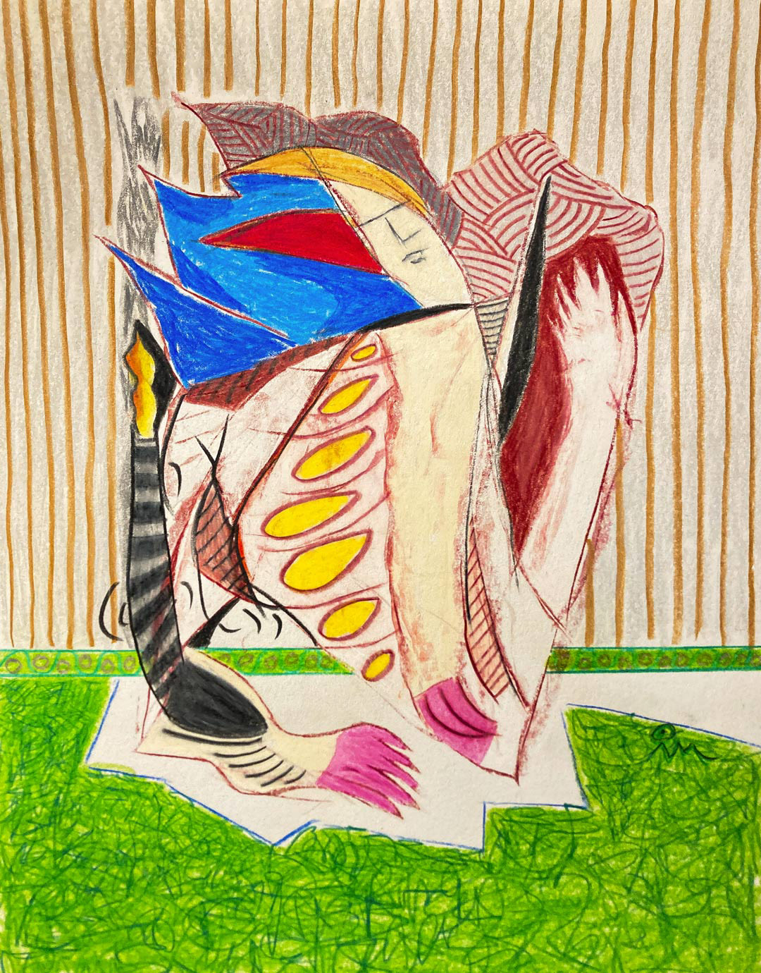 ACTIVE FIGURE I color pen, pastel on paper