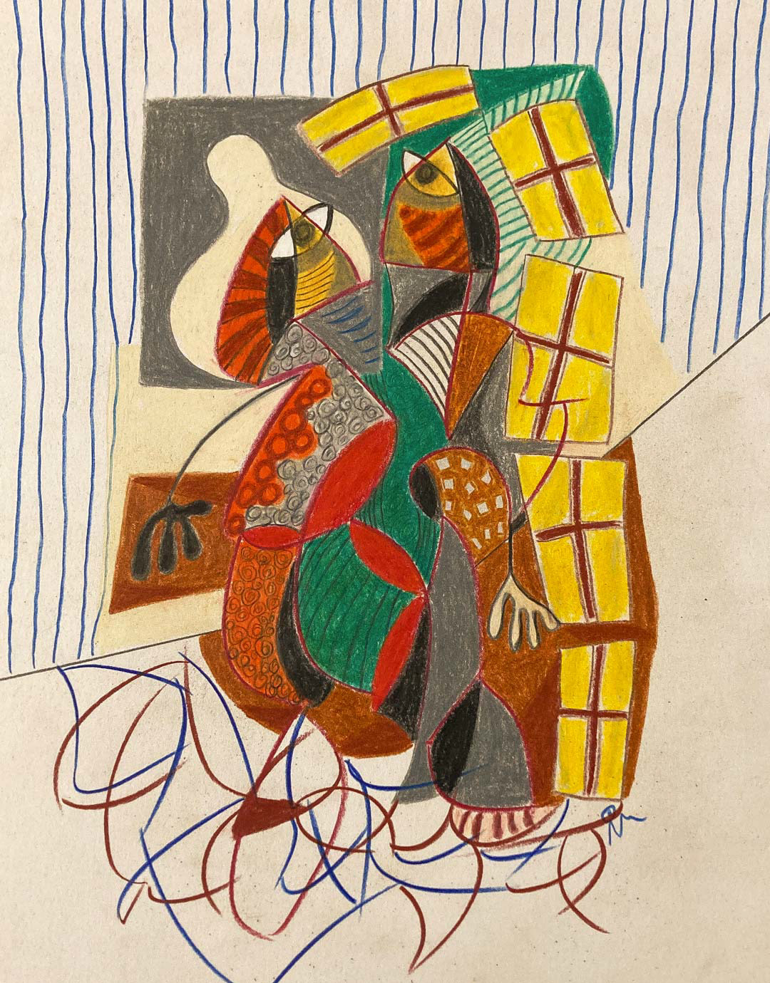 FRIENDLY SPECIES I color pen, pastel on paper