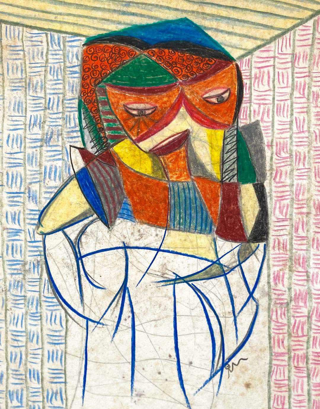 color pen, pastel on paper